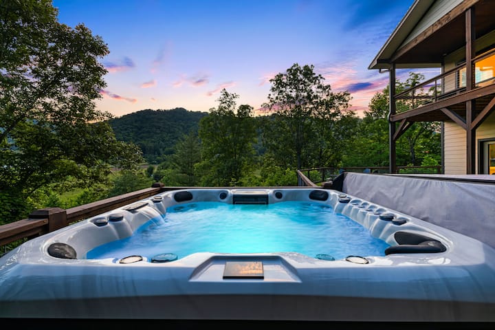 حوض استحمام ساخن + إطلالات في بيت حديث غرب أشفيل