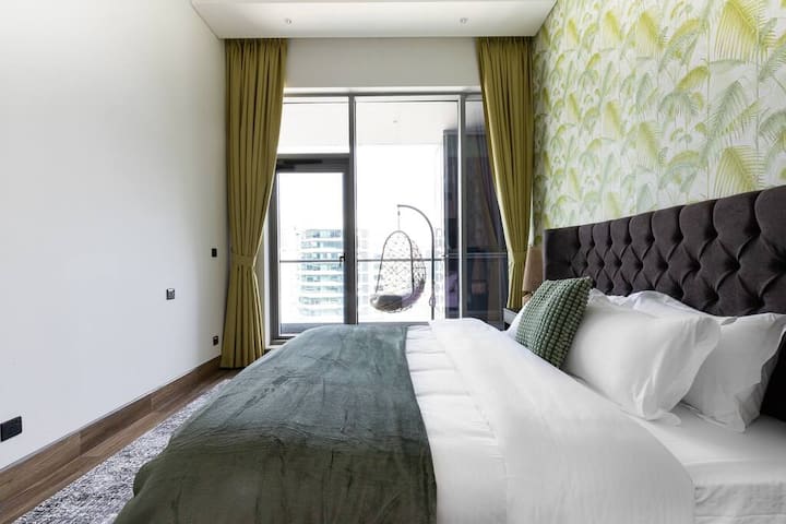 غرفتي نوم ممتازتين في برج جيه ون مع إطلالة على القناة وموقف سيارات مجاني