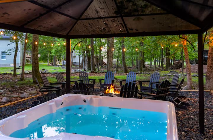 5 غرف نوم على طراز المنتجع | غرفة ألعاب، حوض استحمام ساخن، حفرة نار