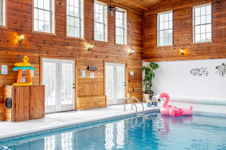استمتع بالغرفة الرائعة في الطابق الرئيسي التي تطل على مراعينا أثناء مشاهدة الحياة البرية من حولك. ستسير الخيول إلى المنزل على طول خط سياجها. إذا لم يكن ذلك كافيًا، فقم بالسباحة في حمام سباحة داخلي مدفأ بالحجم الكامل على مدار العام. نعم، بغض النظر عن الوقت من السنة يمكنك أنت وعائلتك الاسترخاء ليلًا ونهارًا في حمام السباحة الداخلي الساخن الخاص بك المكون من طابقين. تضم غرفة حمام السباحة بارًا جافًا، ودرجًا حلزونيًا إلى الغرفة الكبيرة في الطابق العلوي، ومقاعد، وعوامات حمام السباحة، وألعاب والعديد من الأشياء الممتعة الأخرى. يتم تسخين حمام السباحة إلى 82 درجة ويمكن زيادته مقابل رسوم.