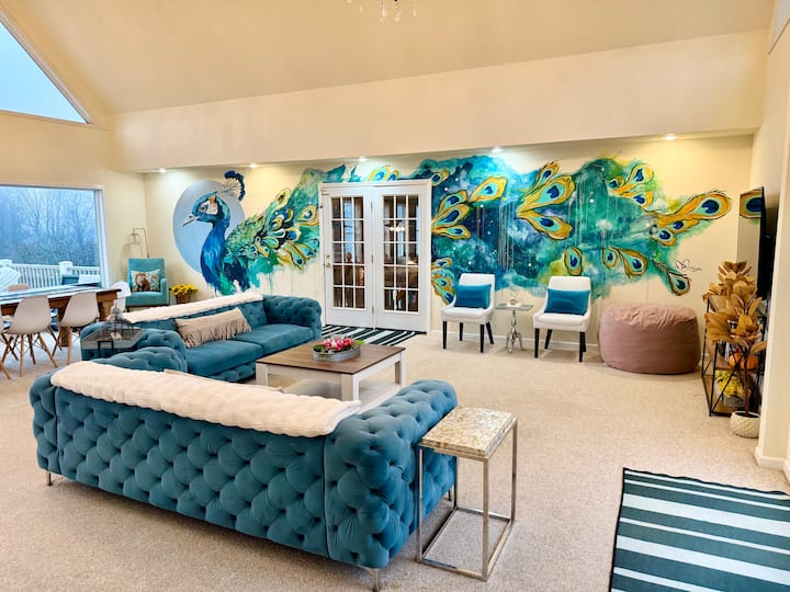 أهلًا وسهلًا بكم في "البيت الكبير" في مزرعة أبل بلوسوم. نحن البيت الوحيد في المنطقة بأكملها الذي يوفر حمام سباحة داخلي مدفأ على مدار العام! الأفضل في جيتيسبيرغ للميزات! انطلق في ممر بطول نصف ميل مزين بأشجار التفاح العضوية والغزلان الودودة وأنت عائد إلى النعيم المطلق. يقع البيت الكبير في منطقة جيتيسبيرغ المرموقة للنبيذ والبساتين على بعد 10 دقائق فقط من وسط مدينة جيتيسبيرغ مما يسمح لك ولعائلتك بالاستمتاع بالطبيعة مع بقائك قريبًا من كل الحركة. منعزل وهادئ – ولكنه عمليًا بجوار ملعب الجولف والتسوق والمطاعم والتزلج والتحف وغيرها الكثير. تشمل المزرعة 30 فدانًا من الممتلكات المملوكة ملكية خاصة حيث الهواء أنظف. اجلس على شرفتك الخاصة المطلة على المرعى حيث يمكنك مشاهدة الخيول والماعز الأقزام والغزلان والحمير والثيران المرتفعة والديوك الرومية البرية بالإضافة إلى العديد من الحيوانات الأخرى.