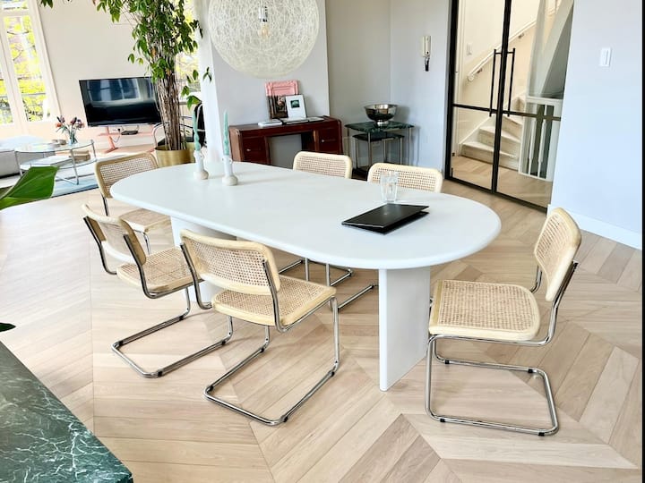 نحن عائلة من أمستردام ونحب السفر! أنا مهندس ديكور وأعيش هنا مع ابنتي ناين وابني فيليكس. على الرحب والسعة في بيتنا!