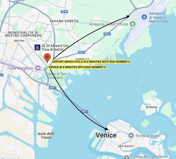 غرفة عصرية بالقرب من فينيسيا والمطار – موقف سيارات مجاني 9