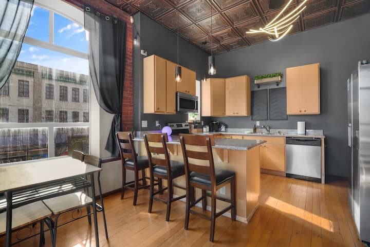 إطلالة على وسط المدينة | غسيل | موقف سيارات | سرير بحجم متوسط