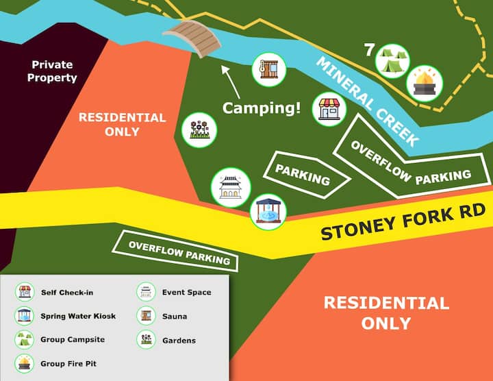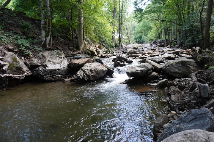 نرحب بك في ماندالا سبرينغز، وهي واحة شفاء سحرية على بعد 25-30 دقيقة فقط من آشفيل، حيث يمكنك أخذ وقتك، والتنفس في هواء الجبل، والاسترخاء على الصوت المهدئ لتيار يتغذى على الربيع، واستكشاف مجموعة كبيرة من مسارات المشي لمسافات طويلة في العقار الذي تبلغ مساحته 67 فدانًا والذي يؤدي إلى غابة بيسغا الوطنية، وإعادة التواصل مع نفسك وأحباءك في الطبيعة.