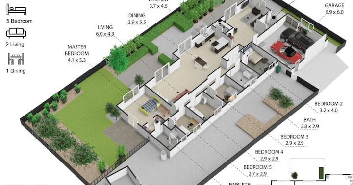 - 5 غرف نوم