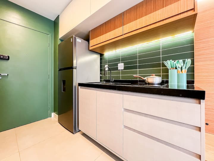 يسمح المطبخ المجهز بالعناصر الأساسية بإعداد وجبات صغيرة، مما يضمن المزيد من الاستقلالية في الحياة اليومية.