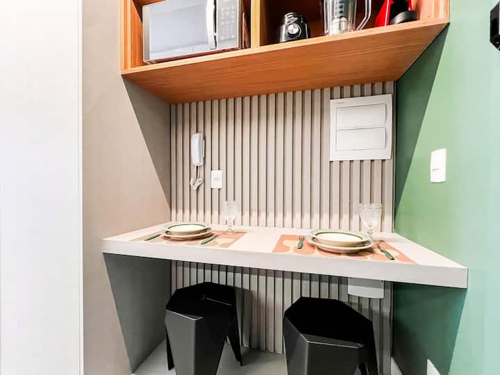 تحتوي الشقة أيضًا على مكيف هواء (تبريد فقط) وشرفة ساحرة، مما يجعل البيئة أكثر متعة مع دخول الضوء الطبيعي.