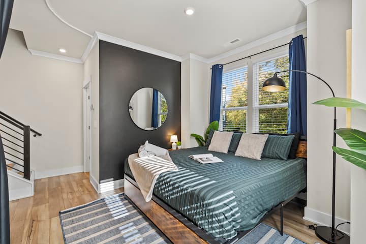 تاون هاوس فاخرة تضم 4 غرف نوم مع سرير كينج مع سطح - في وسط مدينة شارلوت!