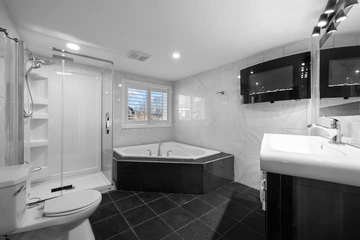 ملاذ عائلي – سرير كينج وجاكوزي وفناء خلفي كبير