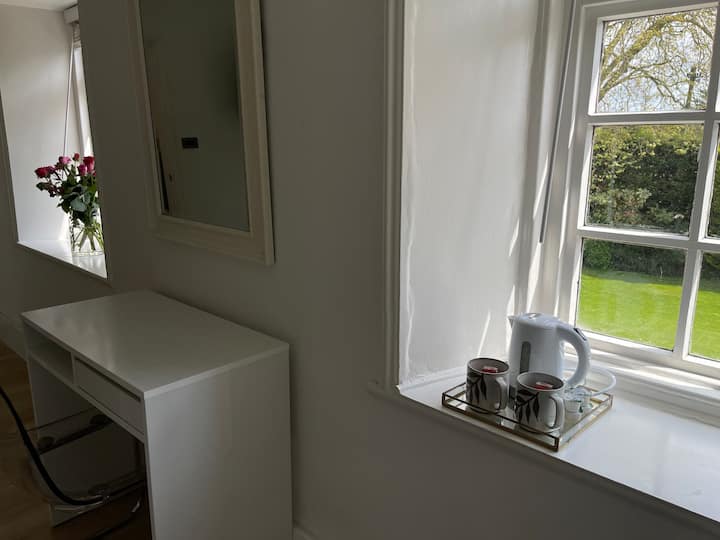 غرفة نوم مطلة على الحديقة + حمام داخلي