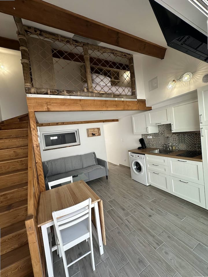 شقة رائعة في الطابق الأرضي مع شرفة في وسط المدينة، مكيفة الهواء، واي فاي
