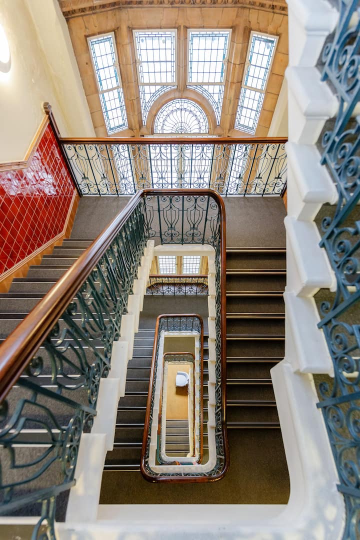 دوقي هاوس هو مبنى من القرن التاسع عشر ويحتوي على غرف نوم مزدوجة وفردية في أربعة طوابق، مع إمكانية الوصول إلى المصعد (من الطابق الأرضي نصف هبط إلى الطابق الرابع). وتتراوح غرف النوم لدينا في الحجم ويمكن للضيوف الاختيار بين الغرف التي تحتوي على مرافق حمامات داخلية أو حمامات مشتركة. يمكن لجميع الضيوف الوصول إلى مطبخ مشترك يقع في كل طابق لتقديم الطعام الذاتي الأساسي ، مع إمكانية الوصول إلى الغرف المشتركة في الطابقين الثاني والخارجي. يتوفر أيضًا غسيل في الموقع للاستخدام في الطابق السفلي (لا يوجد مصعد). يتم تذكير المسافرين الدوليين بإحضار محولات السفر معهم.