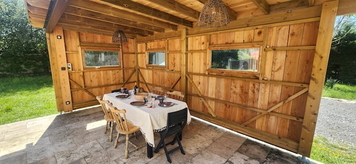 منعزل في الغابة، على بعد 5 دقائق من وسط المدينة والبحيرة وعلى بعد 15 دقيقة من المحيط بالسيارة!