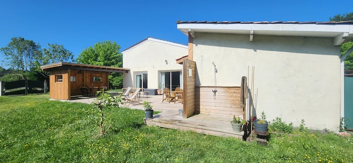 يقع هذا البيت الذي تبلغ مساحته 110 مترًامربعًا في بيئة هادئة في لاكاناو، ويرحب بك بنعومة وضوء بفضل تعرضه للجنوب الشرقي. تم تصميمه لتوفير الراحة والهدوء، ويحتوي على ثلاث غرف نوم جميلة، بما في ذلك جناح رئيسي (سرير 160 × 200) في دوبلكس مع حمام خاص مع مرحاض، لشرنقة كلها في خصوصية.