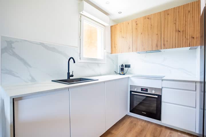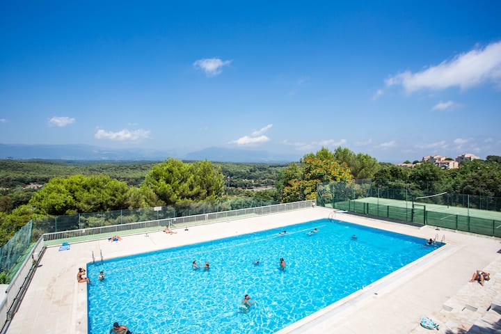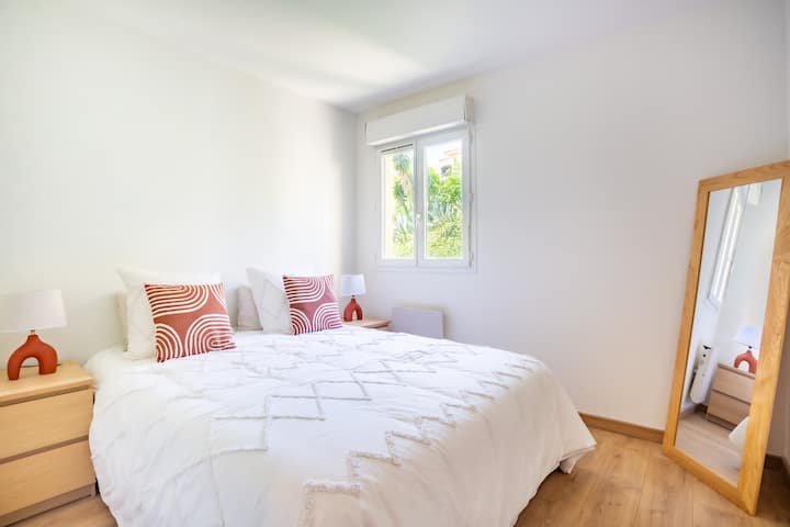 شقة جميلة مكونة من غرفتين مع تراس هادئ + حمام سباحة + مرآب