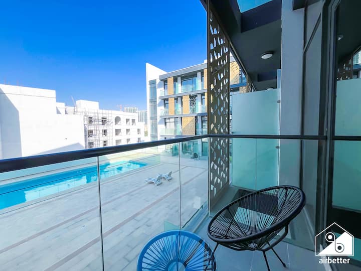استوديو مشرق في قرية جميرا الدائرية + مدخل إلى الشرفة