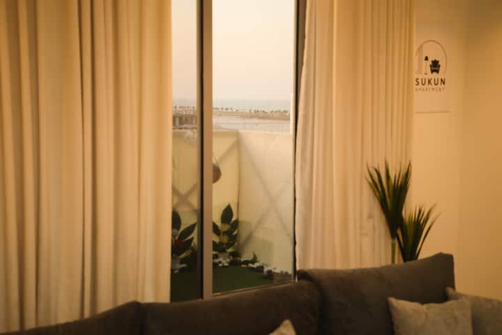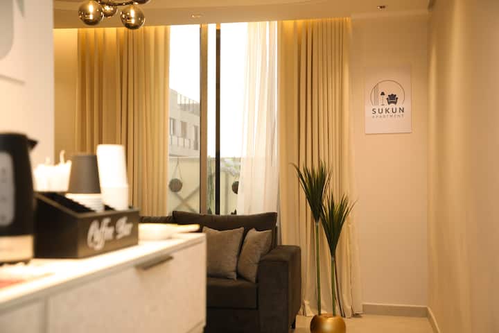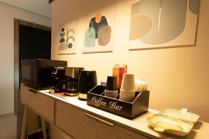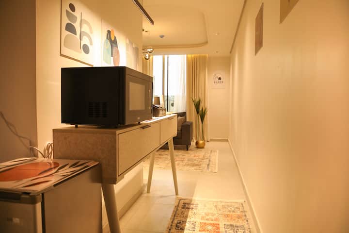 غرفة نوم أنيقة + غرفة معيشة | بار قهوة وإطلالة جزئية