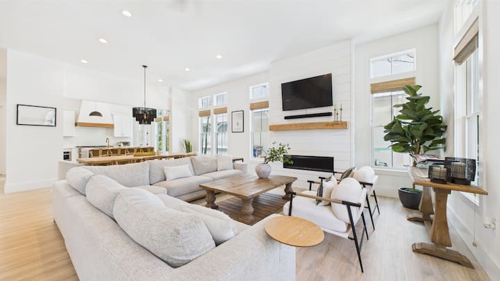سيحب الضيوف مناطق الاسترخاء الخارجية الجذابة والميزات الحديثة ومعدات الشاطئ المضمنة - مما يجعل من السهل الاستمتاع بالوصول الخاص إلى الشاطئ المسور على بعد دقائق فقط. يوفر مسبحان مجتمعيان (أحدهما مدفأ موسميًا) طريقة رائعة للاسترخاء، ويجعل تأجير الدراجات المحلية استكشاف 30A أمرًا سهلاً. يتضمن البيت كل من الممر وموقف السيارات في الشارع وهو مصمم للاسترخاء والمغامرة.