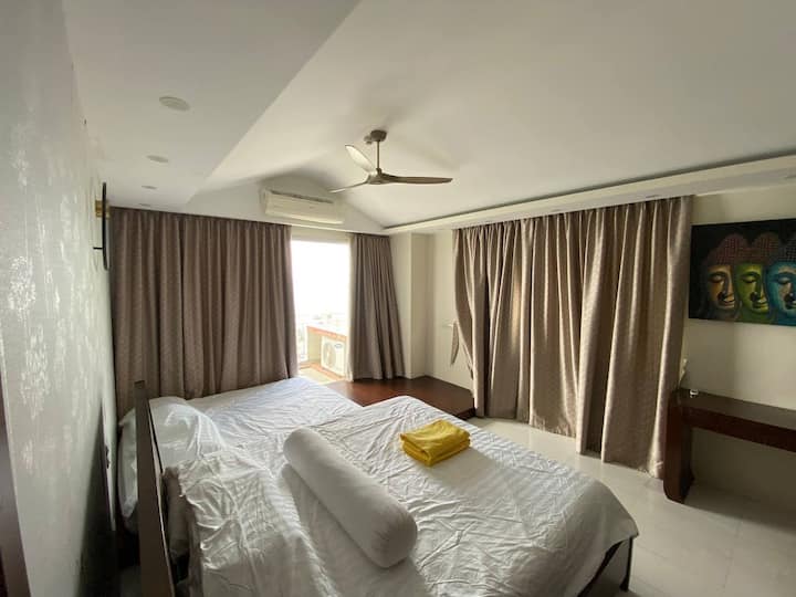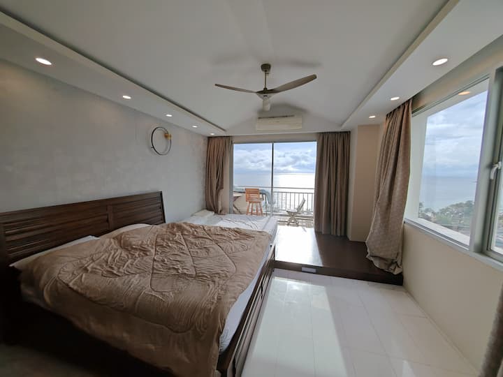 شقة مكونة من غرفتي نوم + مطبخ ضخم وغرفة معيشة وإطلالة على البحر