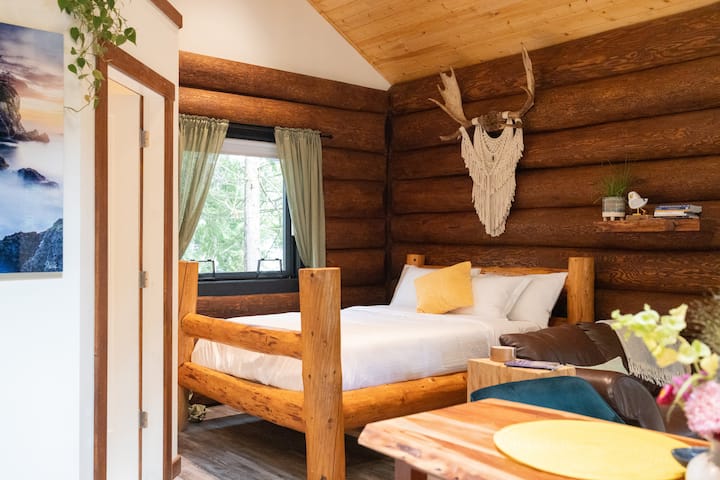 كوخ خشبي مذهل، وسط أوكي مع حوض استحمام ساخن