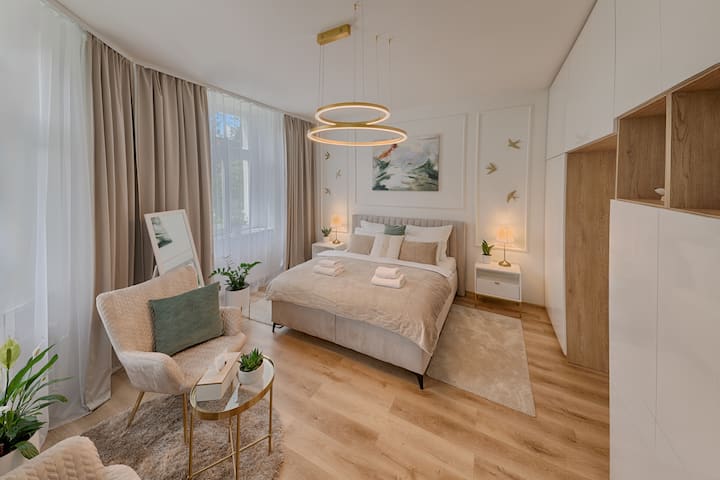 شقة هادئة بجوار السبا • موقف سيارات • 4 دقائق من المركز