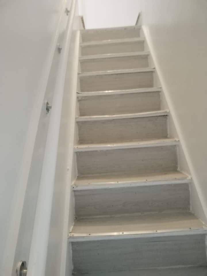 غرفة مزدوجة بسرير فردي مع درجة