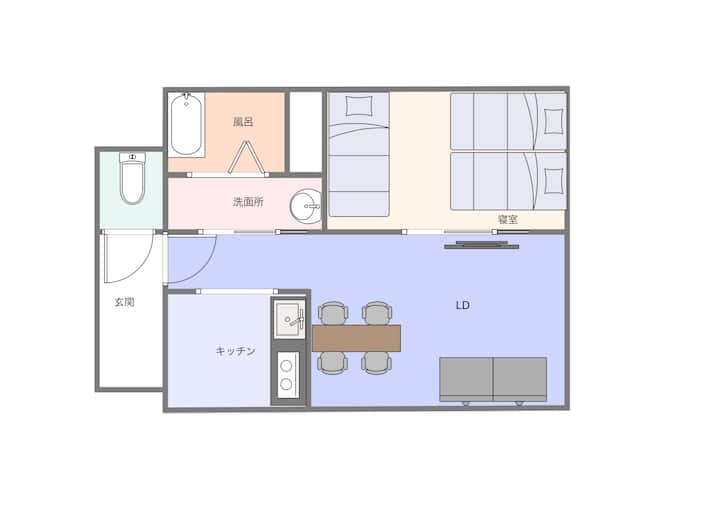 - مجهز بالكامل بمكيف هواء للصيف ومرافق التدفئة لفصل الشتاء. يمكنك الإقامة بشكل مريح حتى في هوكايدو، حيث تتغير درجة الحرارة بشكل كبير اعتمادًا على الموسم.