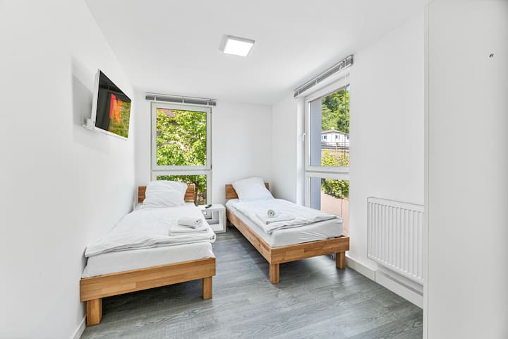 غرفتا نوم | أسرة مفردة | موقف سيارات | مطبخ