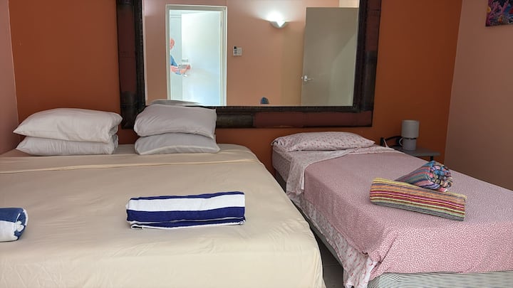 صيف 2021 انتقلت إلى كوراكاو لبدء منتجع بوتيك صغير النطاق (للبالغين فقط) Thuishaven. الشقق خارج الموقع مناسبة جدًا للأطفال وتقع على بعد بضع دقائق بالسيارة من منتجع الميناء [HOME] الخاص بي! مع [HOME]بورت لقد أنشأت مكانًا يشعر فيه الجميع وكأنهم في بيوتهم ويرحبون بهم
