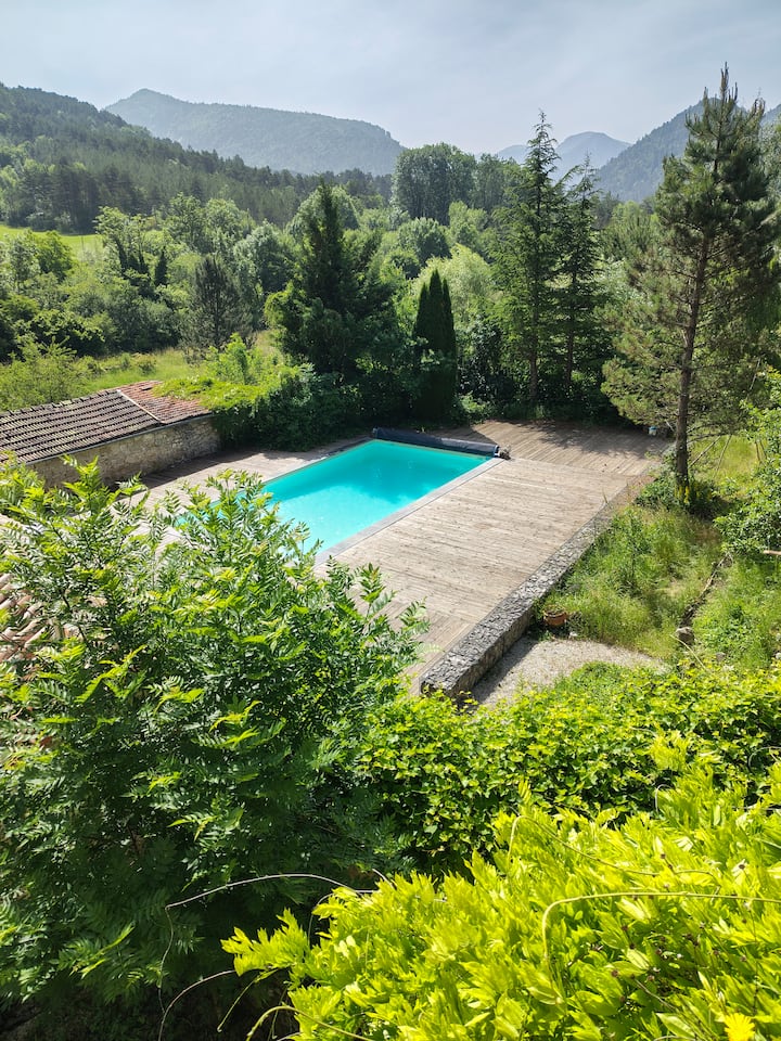 غرفة النوم 1: 25 متر مربع، 4 أسرّة. حمام بدش ومرحاض فيلوكس مع ستارة تعتيم، مواجهة للجنوب، إطلالات على الوادي وحمام السباحة. واي فاي.