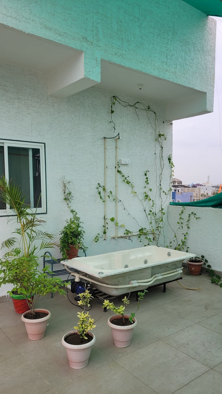 تراس 20 × 30 قدمًا مع إطلالات على مدينة إندور. يوغا الصباح، وقطع كعكة عيد الميلاد في الليل، وجلسات الشاي مع الأصدقاء، هذا السطح هو أفضل ما في الأمر.