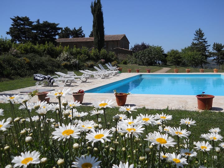 تقع مزرعتي في فال دورسيا الرائعة، وادي كريت السيني في جنوب توسكانا، وتحيط بها المناظر الطبيعية التي سحرت جيوتو وبيروجينو وبينتوريتشيو.