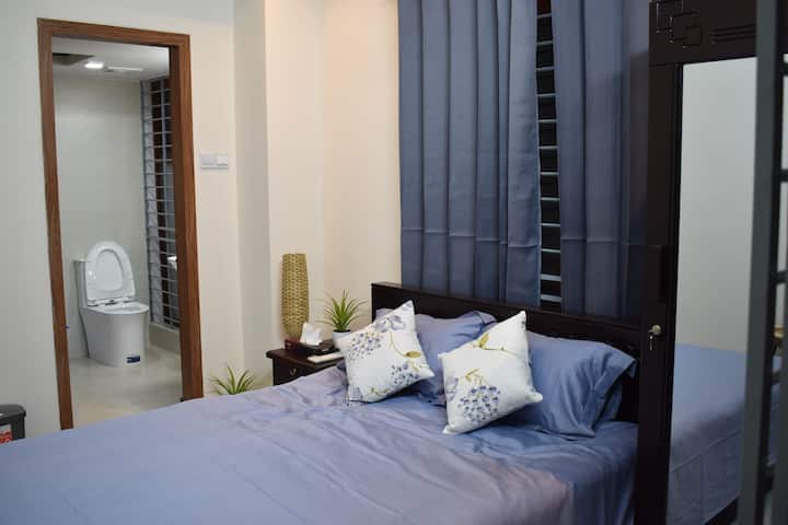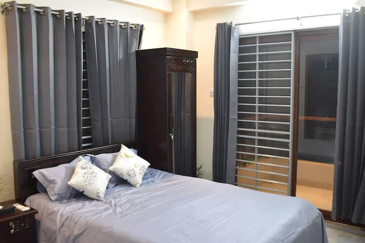 مرحبًا! إنها غرفة نوم مكيفة الهواء في شقة مكونة من 3 غرف نوم في مبنى G، باسوندارا آر/إيه. تحتوي على حمام ملحق وشرفة خاصة. مناسب لجميع أنواع الإقامات. على بعد 10 دقائق من مستشفى إيفركير، وعلى بعد 5 دقائق من مدخل الطريق السريع.
