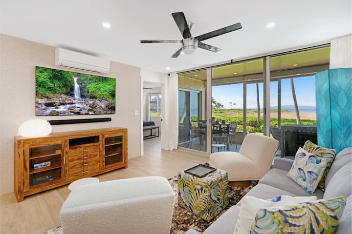 استمتع بتجربة المعيشة الحديثة على شاطئ المحيط في مينوهون شورز #119، وهي شقة في الطابق الأرضي تم تجديدها بشكل جميل مع إمكانية الوصول المباشر إلى الحديقة والشاطئ. يضم هذا الملاذ المكون من غرفتي نوم وحمامين سريرين بحجم كينج، ومنطقة معيشة أنيقة مع سرير أريكة، ومكيف هواء منفصل، وأجهزة تلفزيون ذكية، ومطبخ كامل. استمتع بغروب الشمس من شرفتك الخاصة أو استكشف حمام السباحة المطل على المحيط في المنتجع وحفلات الشواء على السطح والشاطئ الرملي. مثالية للأزواج أو العائلات التي تسعى إلى الراحة والأناقة والراحة في شمال كيهي.