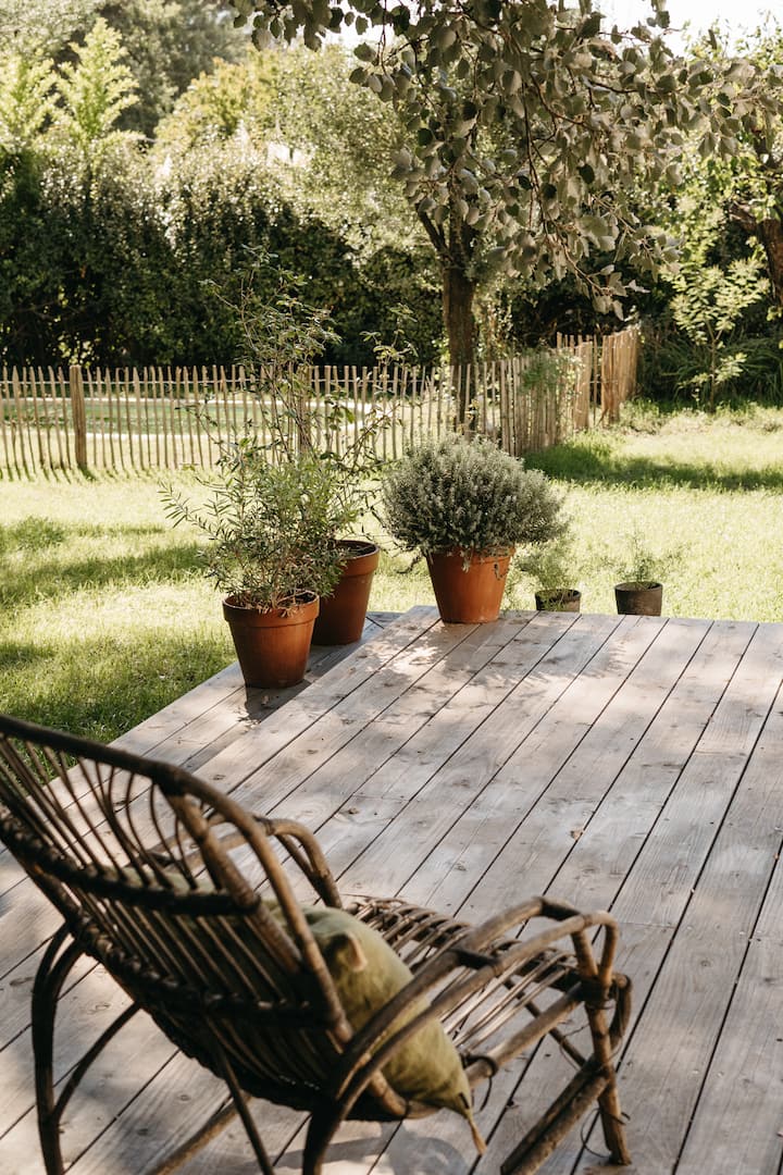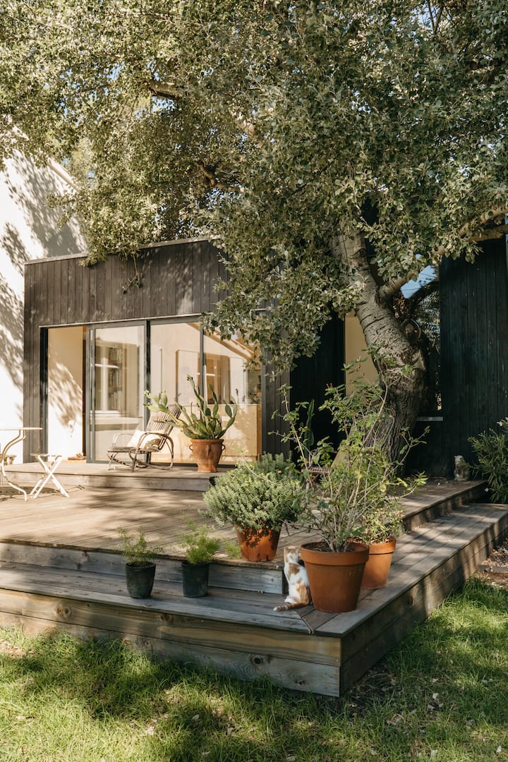 بيت جميل جدًا تم تجديده مؤخرًا بواسطة مهندس معماري ومصمم داخلي، مع حديقة ساحرة وحمّام سباحة...