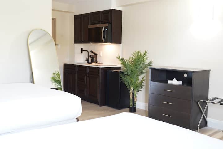 شقة مزدوجة مع سرير كوين مع إفطار مجاني ومطبخ