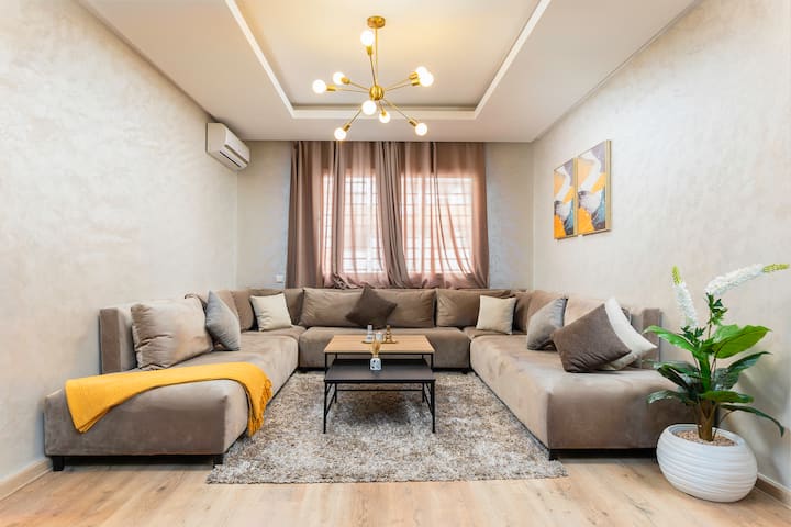 شقة فاخرة بغرفتي نوم • حمام سباحة وخدمة واي فاي سريعة وموقف سيارات