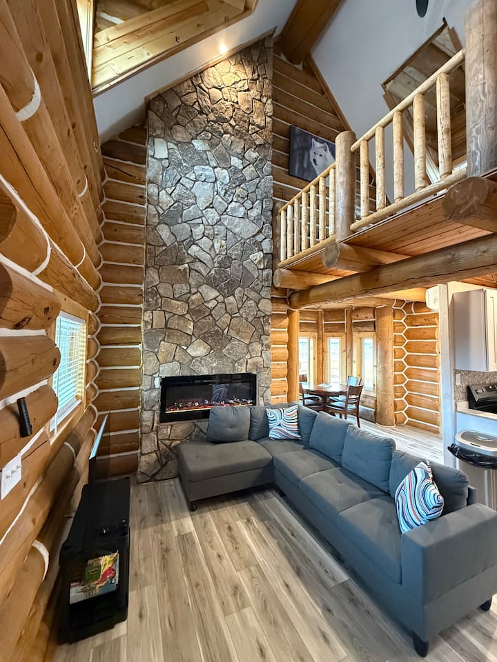 كوخ الذئب الأبيض وحوض استحمام ساخن مع شواء