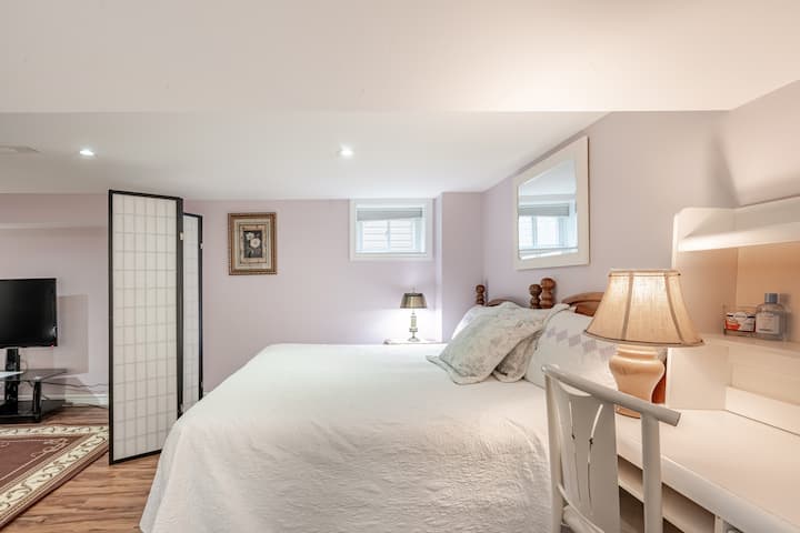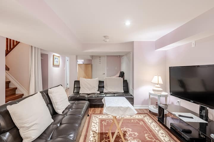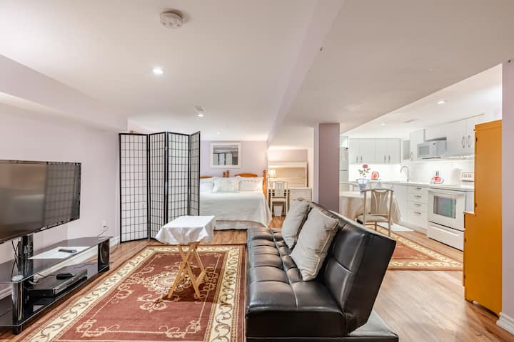 جناح في الطابق السفلي بتصميم مفتوح مع مطبخ جديد