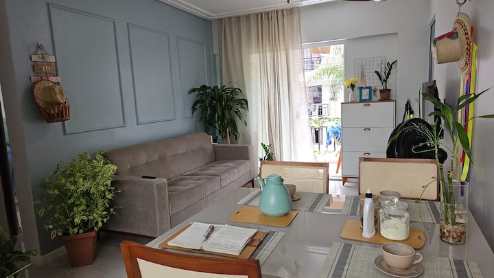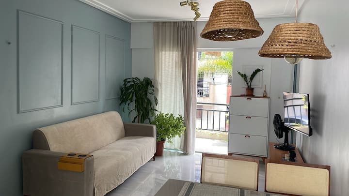 شقة مريحة مع شرفة وحمام سباحة.
