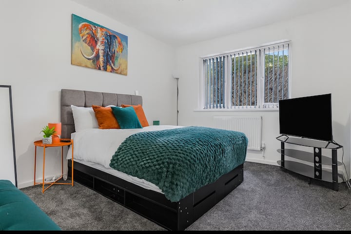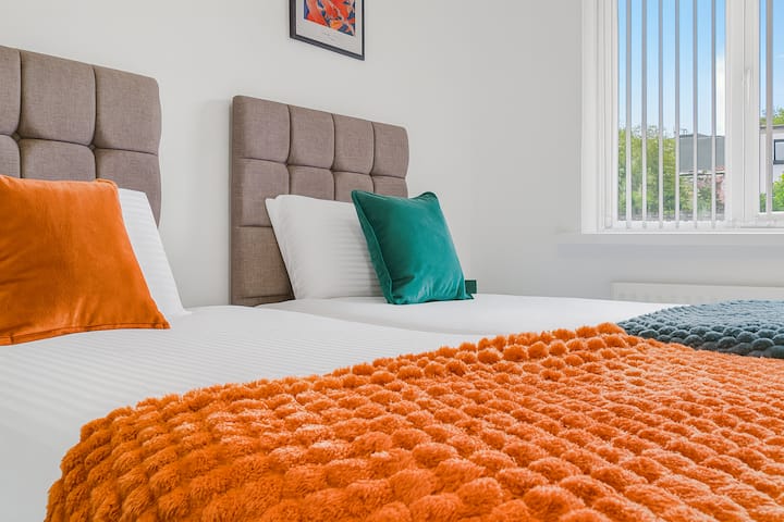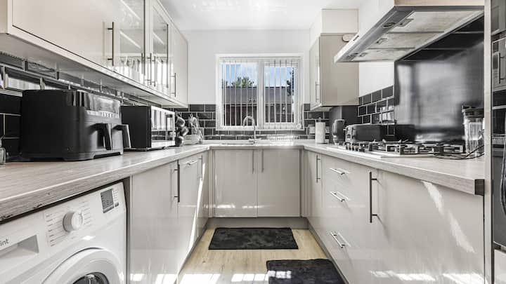 بيت فسيح مكون من 4 غرف نوم • تلفزيونات ذكية • موقف سيارات • بالقرب من M6