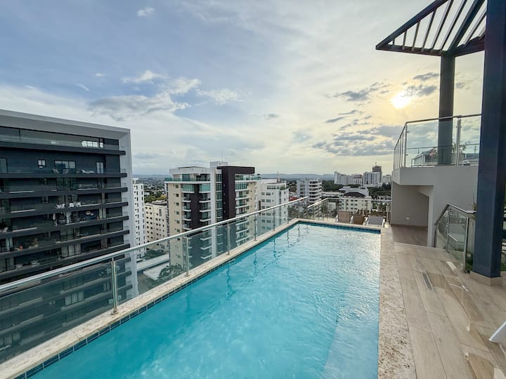 الطابق السابع الحصري مع إطلالة على المدينة ومسبح لا متناهي