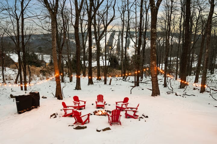 إطار A فاخر مع حوض استحمام ساخن ومدفأة وتزلج