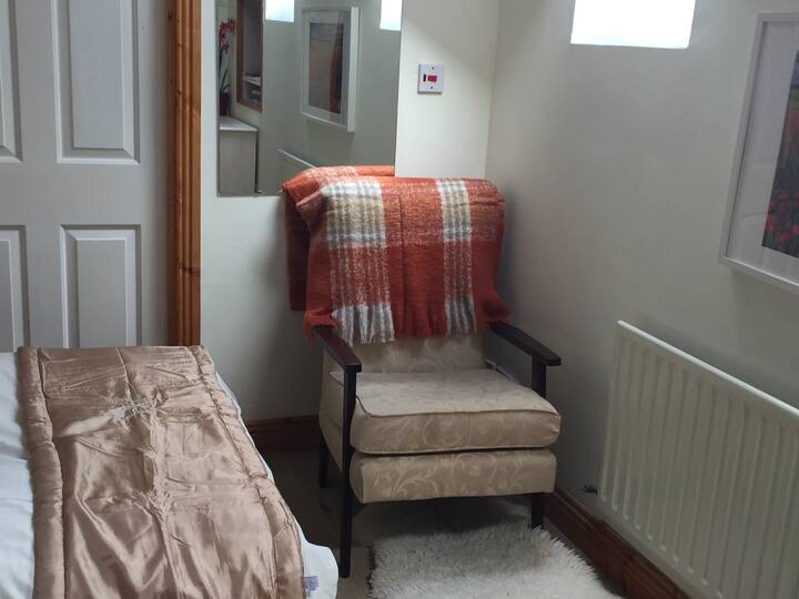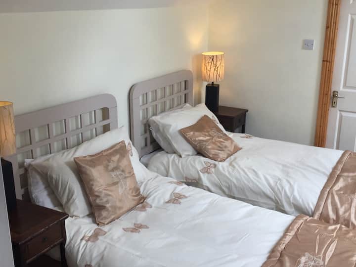 غرفة بسريرين صغيرين في طابق خاص مع حمام داخلي
