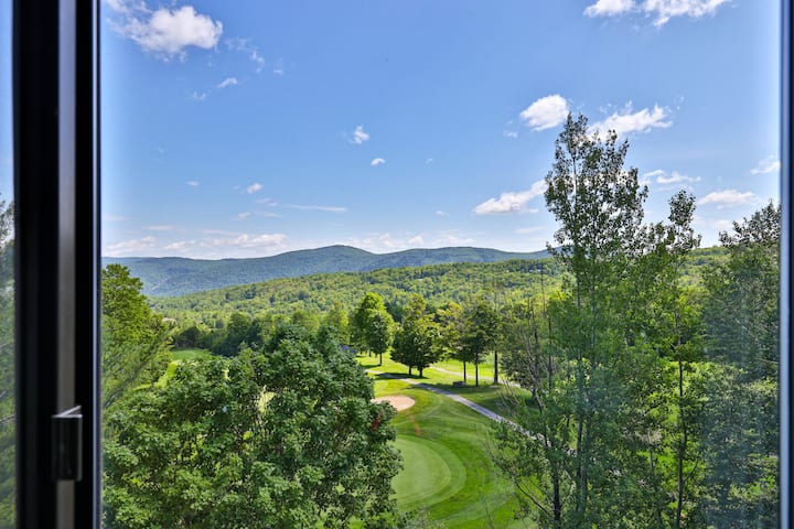 شقة فسيحة مكونة من غرفتي نوم/1.5 حمام في منتجع ماونتن جرين بالقرب من منتجع كيلينغتون تتسع لـ 6 أشخاص مع أسرّة كوين وسرير بطابقين وأريكة للنوم. مطبخ كامل ومدفأة مريحة وتلفزيون ذكي وخدمة واي فاي مجانية وإطلالات على الجبل. وسائل الراحة في المنتجع: حمام سباحة داخلي ساخن وأحواض استحمام ساخنة وساونا وغرفة بخار ومركز لياقة بدنية وحمام سباحة خارجي موسمي مع شوايات. حافلة مجانية إلى المنحدرات، تأجير معدات التزلج في الموقع. مثالية للعائلات والمجموعات. تسجيل الوصول بدون تلامس، موقع المبنى 2 الهادئ. مغامرات جبلية على مدار العام تنتظر في Alpine Vista!