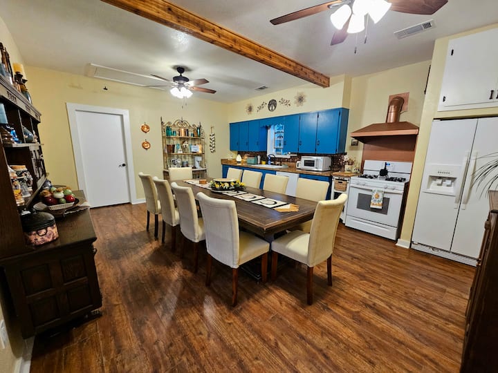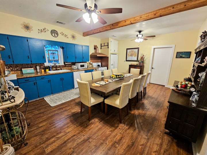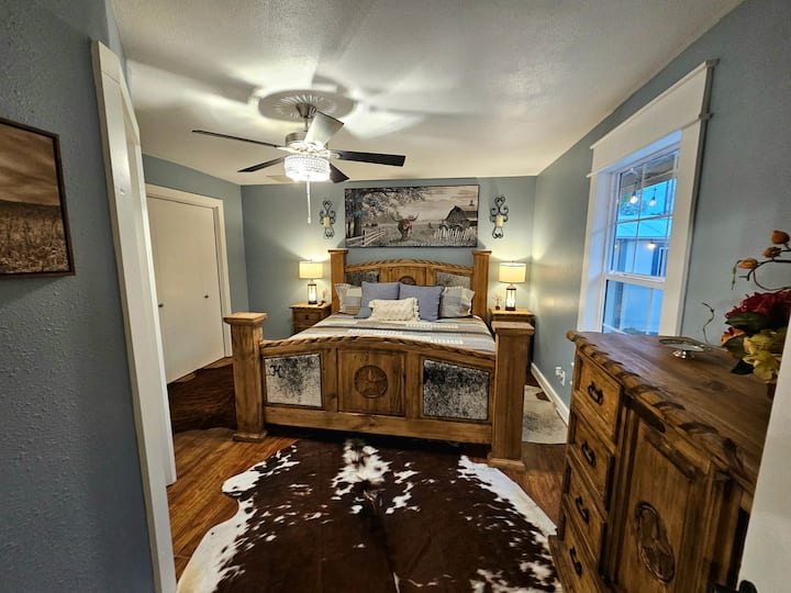 اكتشف سحر تكساس هيل كانتري في هذا المزرعة التي تم تجديدها حديثًا في عام 1871، وتقع على مزرعة ماعز مغلقة، على طول شيري كريك الجميلة. يقدم هذا الملاذ الهادئ والمشاهد الخلابة مزيجًا مثاليًا من الطابع التاريخي والراحة الحديثة والجمال الطبيعي — مثالي للعائلات أو الأزواج أو الأصدقاء الذين يبحثون عن الاسترخاء والمرح في الهواء الطلق.