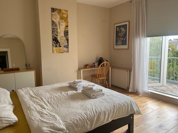 غرفة ذات أجواء رائعة مع شرفة، على بعد 300 متر من الشاطئ