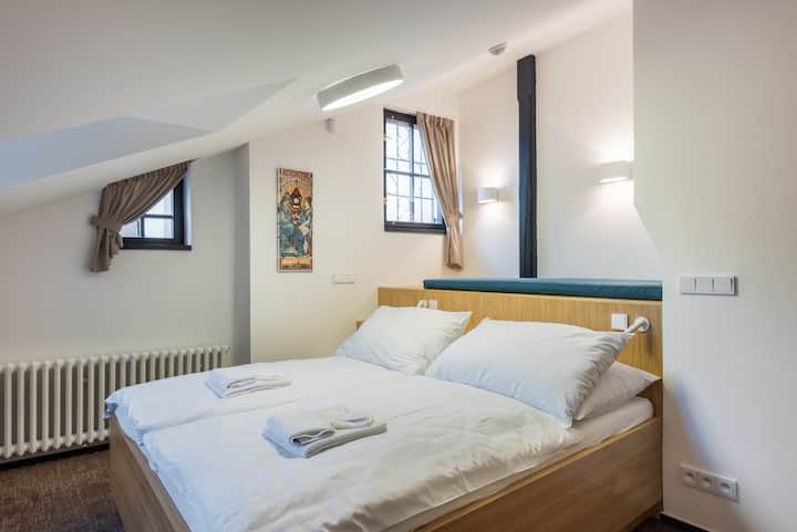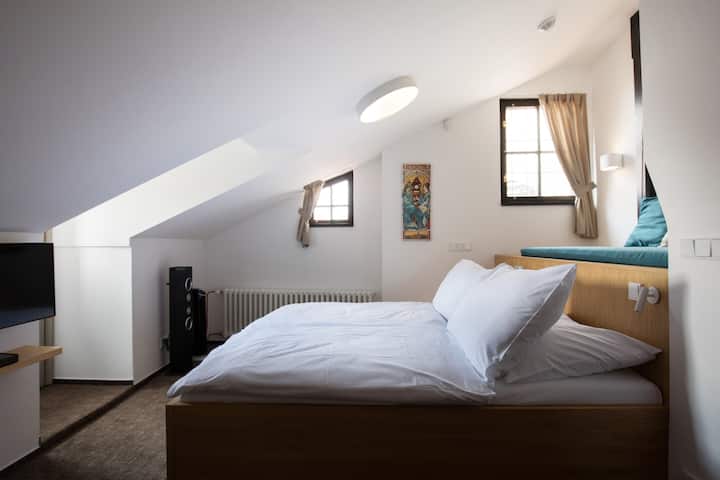 منزل مدينة قائم بذاته يحتوي على أربع غرف خاصة مجهزة بحمام خاص. يمكن للضيف مشاركة قبو صغير مجهز بدراجتين متاحتين للاستخدام (إذا لم يستخدمهما الضيوف الآخرون )، وهناك أيضًا طاولة صغيرة للجلوس حولها ، ولكننا نوصي بأماكن حول حانة يو سيرنيهو فولا أو ستراهوفسكي بيفوفار أو للقهوة الجيدة للغاية والخباز موي كريدنك. لكل خرائط جوجل