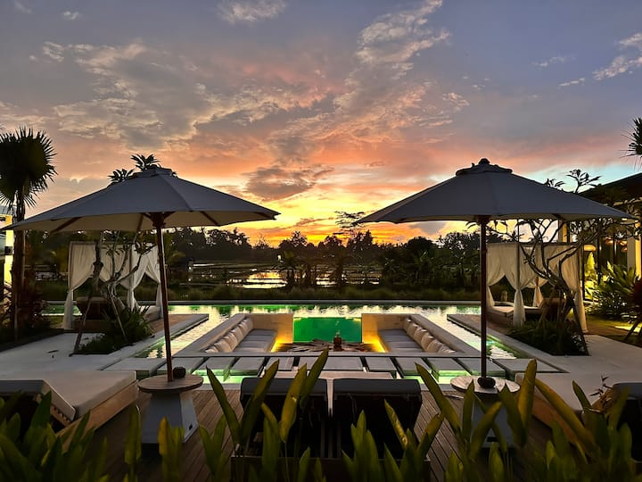 استيقظ على أصوات الطبيعة المهدئة وانغمس في جمال إطلالة حقل الأرز في بالي. هذه الفيلا مثالية لأولئك الذين يبحثون عن السلام والهدوء أثناء الإقامة بالقرب من المعالم الثقافية النابضة بالحياة في أوبود. تم تصميم كل لحظة لإلهام الهدوء والتواصل مع الطبيعة.